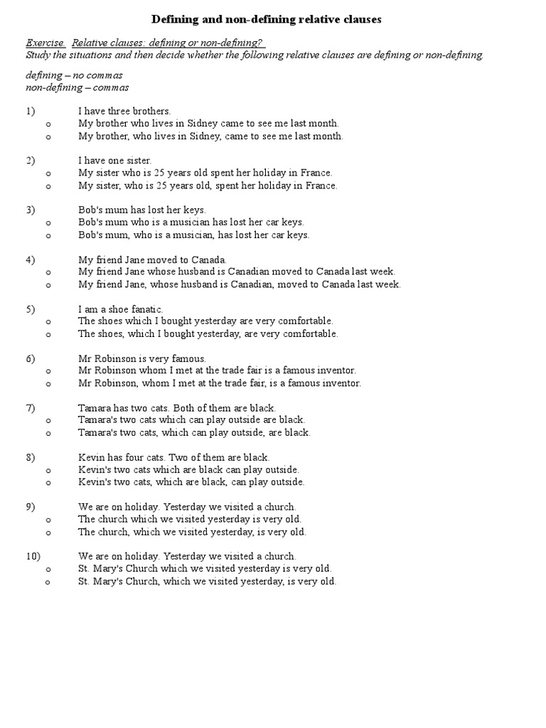 No questions relative clauses relative clauses: Some of the worksheets displayed are relative clauses work 1, relative clauses work, relative clauses, relative pronouns, defining relative clauses, name date grammar quiz relative clauses. All relative clauses describe a relative pronouns. Relative clauses using relative pronouns random wheel. By manjusha nambiar · november 4, 2016. Defining relative clauses these describe the preceding noun in such a way to distinguish it from other nouns of the same class. We use relative clauses to describe or give extra information about something we have already mentioned. (before doing the exercises you may want to read the lesson on relative clauses ). Do the exercises below on relative clauses and click on the button to check your answers. Relative clause worksheets to print relative clauses are a type of subordinate clauses, used to provide explanation or information related to the accident, event or idea discussed previously. Relative clauses activities and games. Relative clauses/ relative pronouns pdfs and teaching tips. All worksheets only my followed users only my favourite worksheets only my own worksheets.